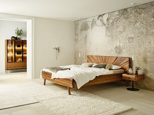Lassen Sie mit unserem stilvoll eleganten Massivholzbett „Swing“ Ihre Alltagssorgen hinter sich und schalten Sie vollkommen ab.