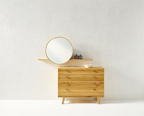 Juna Schlafprogramm im Sixties Style. Holzarten und Grössen individuell planbar. Breiten: 90/100/120/140/160/180/200, Länge: 200/210/220cm. Holzarten und Grössen individuell planbar. (Asteiche,Eiche, Naturbuche,Buche, Esche, Zirbe, Astnuss, Nussbaum,verschiedene Lackfarben und Farbgläser)