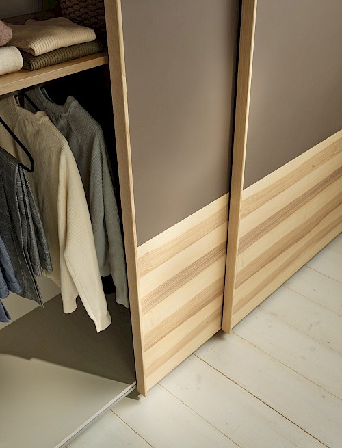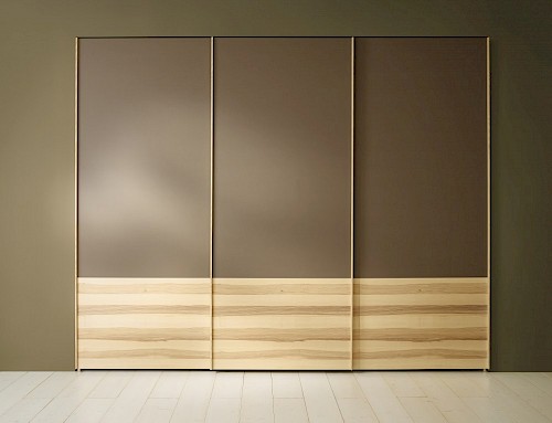 Schiebetürenschrank Ruum mit Farbglas matt. Kleiderschrank massiv individuell in fast jeder Größe machbar. Holzarten und Grössen individuell planbar. (Asteiche, Naturbuche, Esche, Zirbe, verschiedene Lackfarben und Farbgläser)