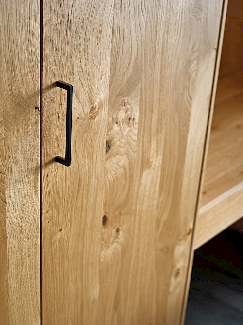 Als Ergänzung für das Korpusmöbel-System Jaso gibt es jetzt den passenden Kleiderschrank in Massivholz. Mit ringsum sichtbarem Falz in vielen Holzarten stufenlos erweiterbar. Anfertigung nach Maß, Farbgläser nach Wunsch und Auswahl. Holzarten, Eiche, Wildeiche, Nussbaum, Zirbe, Erle, Kirsche, Buche,Kernbuche