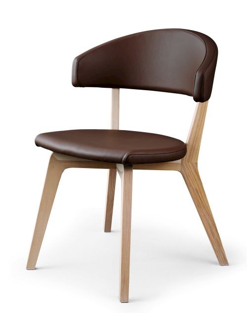 Stuhl in Stoff oder Leder, Füsse in verschiednen Holzarten oder Metall schwarz und bronze, Fixgestell oder Drehgestell