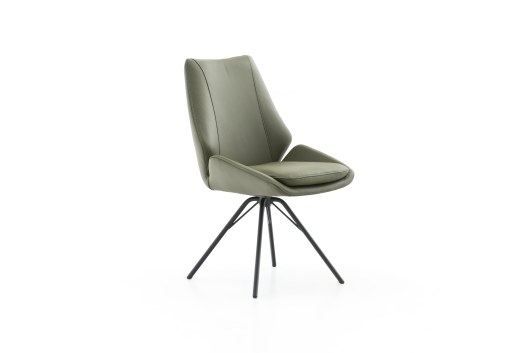 Der George ist ein toller, drehbarer Esszimmer-Sessel mit einem bequemen, breiten Sitz und guter Polsterung. Die Untergestelle gibt es in 2 verschiedenen Metallgestellen, 4 Farben, optional Rückdrehfunktion und einem Holzdrehgestell in Eiche oder Buche.