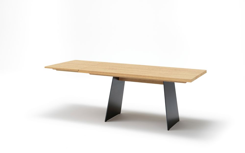 mit verschiedenen Untergestellen in Holz oder Stahl in verschiedenen Farben. Holzarten und Grössen individuell planbar. Als Fixtisch oder Auszugstisch. Auszugstechnik: integrierte Ansteckplatte, Syncronauszugstisch oder Gestellauszug mit Auszugslänge von 50-115cm, Grundgrösse: 150-240cm