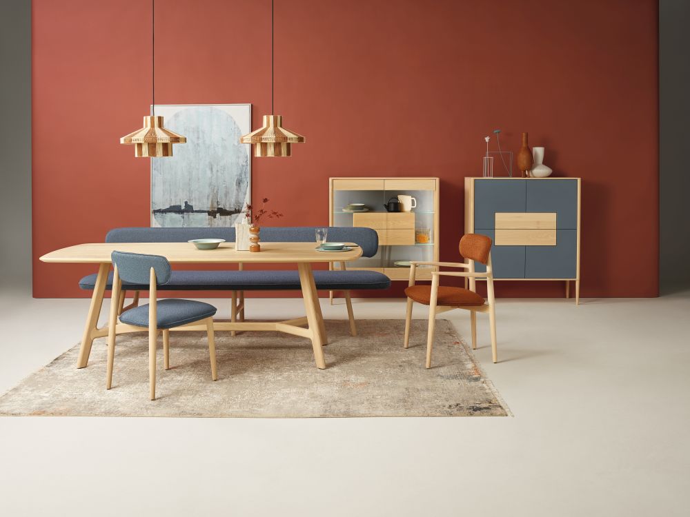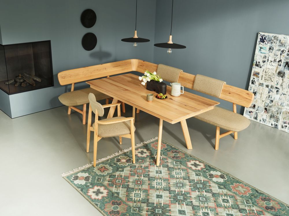 Das Speisezimmerprogramm listo besticht durch formschöne Details, die von der Natur inspiriert sind. Aufgrund der Vielfalt der Formen und Ausführungen kann man sich sein Esszimmer ganz nach seinen Vorstellungen zusammenstellen. Eine große Auswahl an Hölzern, Stoffen, Polster- und Gestellvarianten machen dieses Möbelprogramm zu einem wunderbar „wandelbaren“ Ensemble, das keine Wohnwünsche offen lässt.