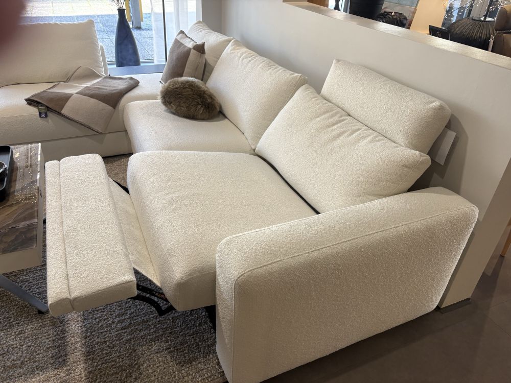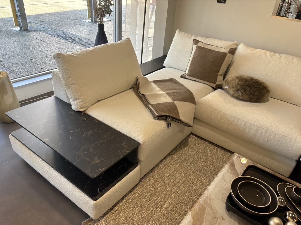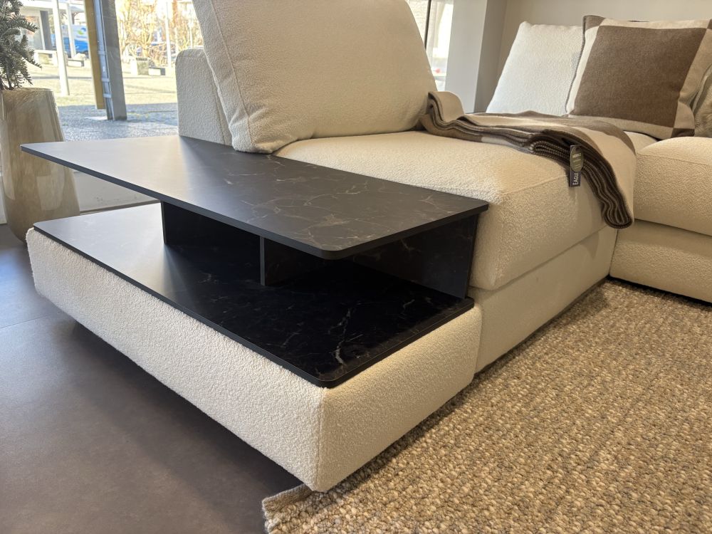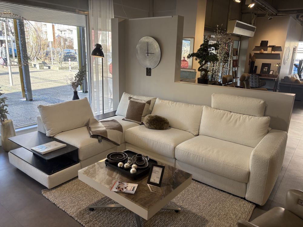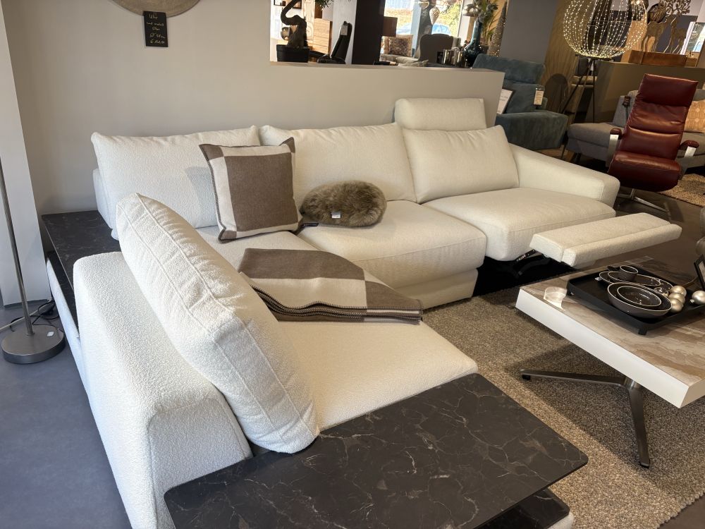 Abmessungen: BHT 309x86x229cm ca. SH:46cm, ST: 63cm Stoff Alpine101 ivory, Sitz: medium, Fuss H50 schwarz, Armlehne A