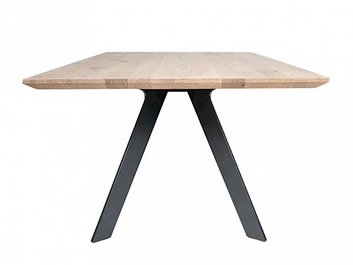 Tisch Puro mit Wangen in Schwarzstahl oder Massivholz. Platte in Massivholz, verschiedene Kantenform, optional integrierte Ansteckplatte. Holzarten und Grössen individuell planbar. Passendes Banksystem mit Holz oder Metallwangen nach Maß in 4 verschiedenen Varianten.