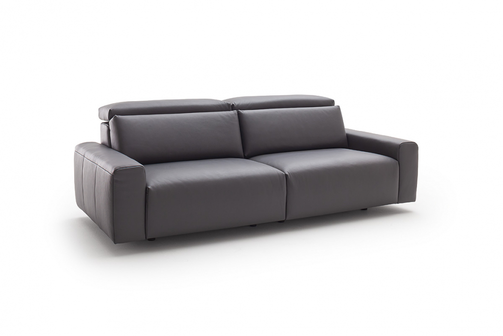 chices und modernes Sofa mit angesagter Rautensteppung (Rücken glatt oder mit Steppung) , motorischer Sitztiefenverstellung (Optional) und Kopfteilverstellung. Hier kann man richtig gut Launchen und trotzdem gut Sitzten. Vielfältiger Typenplan für individuelle Anpassung. 2 Höhen (45+47cm), 2 Härten, 2 Fussgestelle in 5 Farben, über 300 Stoffe, kein Leder.