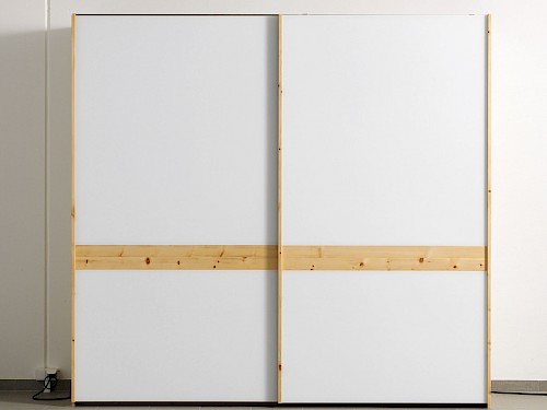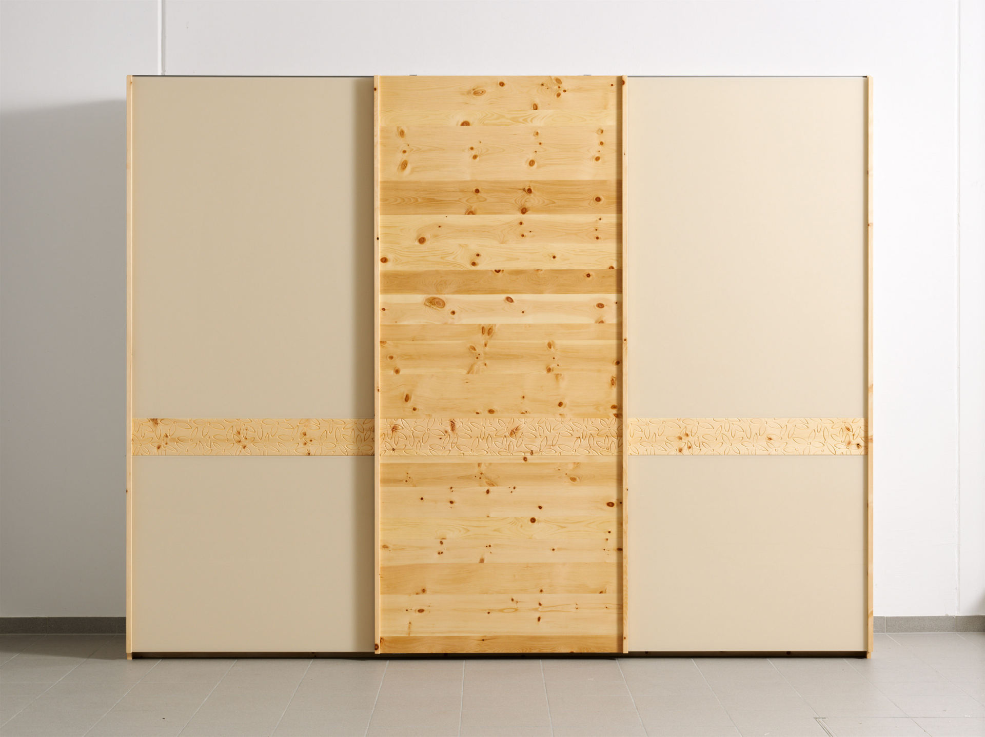 Schiebetürenschrank Ruum mit Farbglas matt. Kleiderschrank massiv individuell in fast jeder Größe machbar. Holzarten und Grössen individuell planbar. (Asteiche, Naturbuche, Esche, Zirbe, verschiedene Lackfarben und Farbgläser)