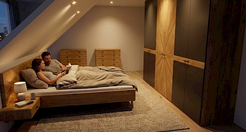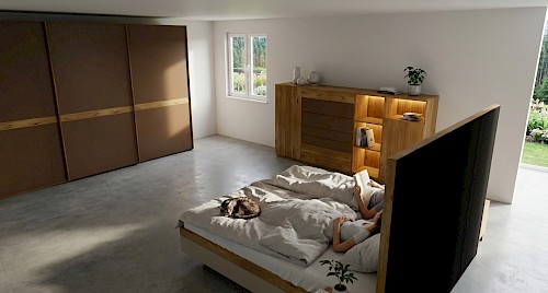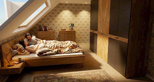 Wir sind Spezialist für Massivholzbetten und Kleiderschränken in grosser Auswahl. Vom Einzelbett bis zum Doppelbett oder Familienbett, wir machen fast alles möglich. Alle Betten und Kleiderschränke bekommen Sie in verschiedenen Grössen auf Maß, Holzarten und Oberflächen sowie jeder Lackfarbe (matt oder hochglanz) oder als Farbglas. Egal welche Größe, ob in einer Nische oder Schräge, wir machen fast alles möglich. Alle Möbel sind individuell planbar. Wir sind Ihr Einrichtungsdesigner und Einrichtungsplaner. Unsere wertvolle Planung ist kostenfrei aber nicht umsonst.Wir haben Kleiderschränke und Möbel nach Maß. Unsere Homepage zeigt nur einen kleinen Teil der Möglichkeiten. Entdecken Sie jetzt die Vielfalt der Massivholzkleiderschränke und Massivholzbetten. Wohnen wird Wohlfühlen !