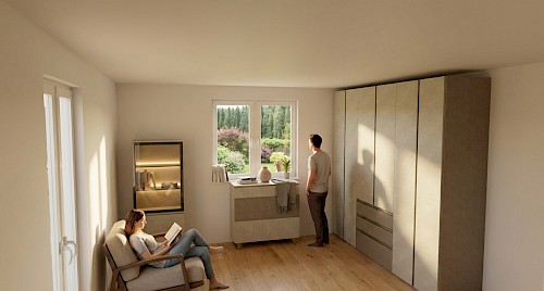 Ruum das Raum Ordnungssystem, universell einsetzbar, egal ob im Bereich Wohnen, Schlafen, Kleiderschränke oder in der Garderobe. Mit ruum den Wohnraum gestalten und gleichzeitig alles, was uns lieb und wert ist dank der individuell ausgesuchten Innenausstattung optimal unterbringen. In einer aufgeräumten Umgebung wohnen und doch auf alles sofort Zugriff haben. Hier gibt es alles nach Maß