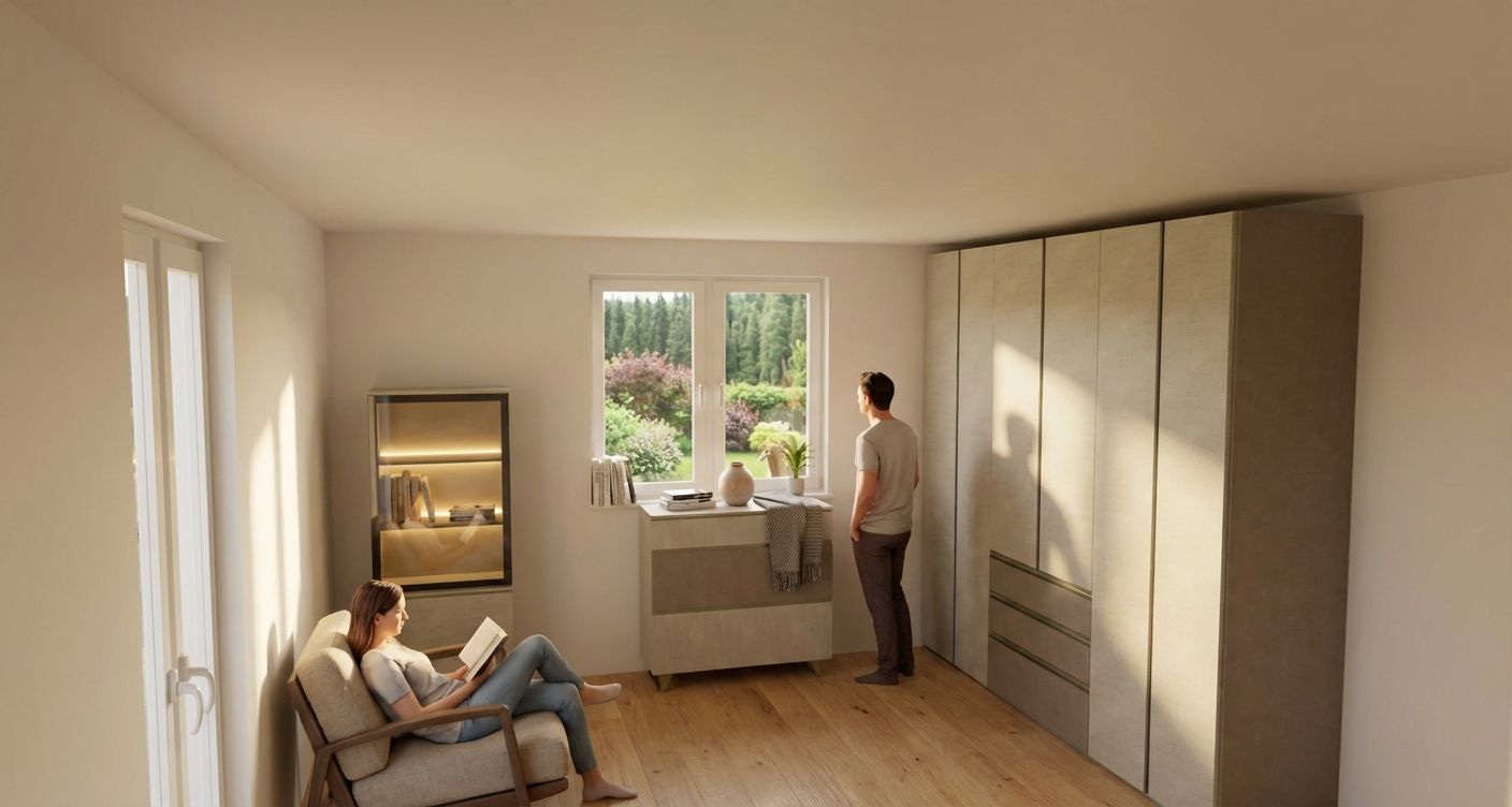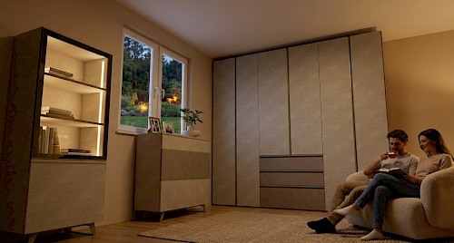 Maria ist unser Designer Schranksystem nach Maß in verschiedenen Frontoptiken mit Echtholzfurnier, Lack, Glas, Keramik und Melaminbeschichtung. Von puristisch bis extravagant ist alles möglich. Auch im Kombi mit unseren Regalsystem Sinos und Focos lassen sich tolle Lösungen designen. So kann auch ein Homeoffice einfach mit integriert werden. Alles in 3D planbar und nach Maß. Made in Germany !