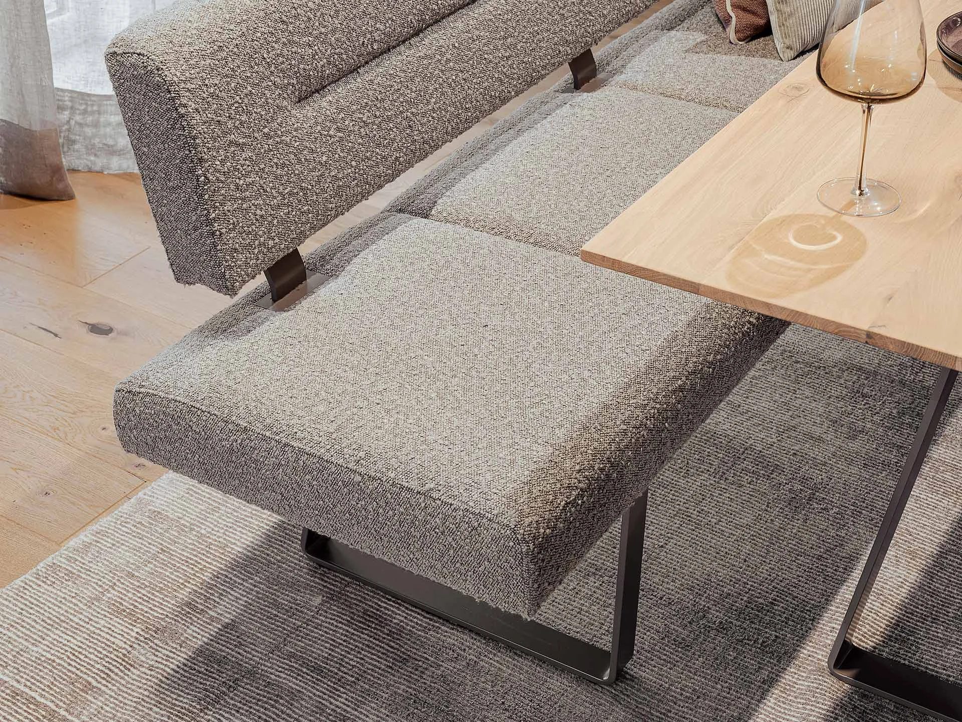 gepolsterte Einzelbank oder Eckbank in Stoff oder Leder, Füsse in Holz, cm-genau Maßanfertigung