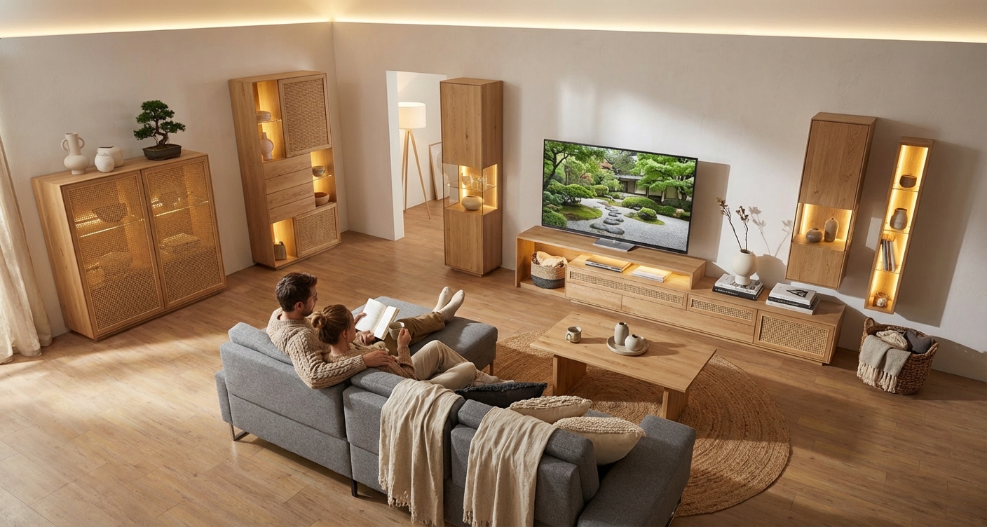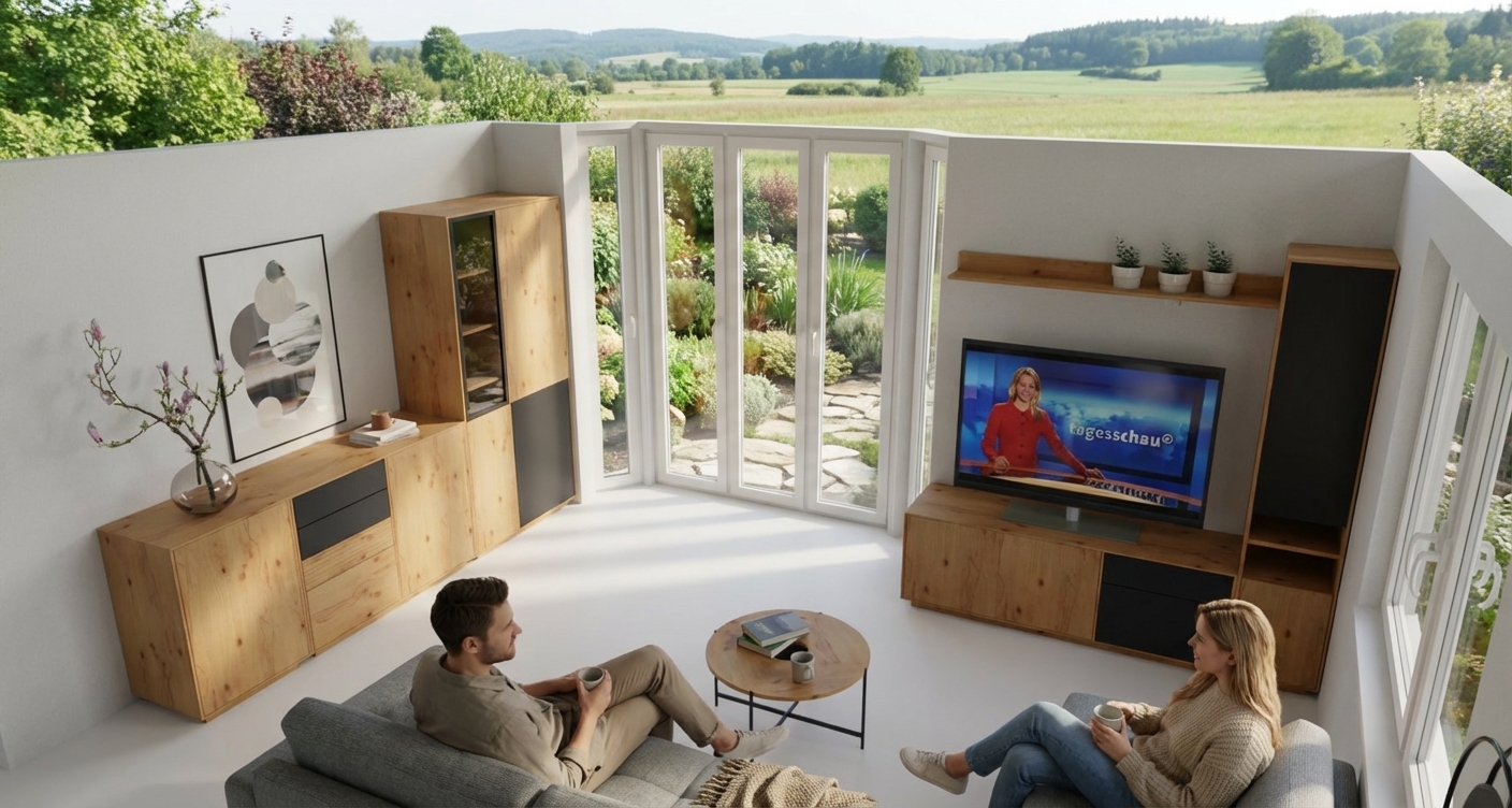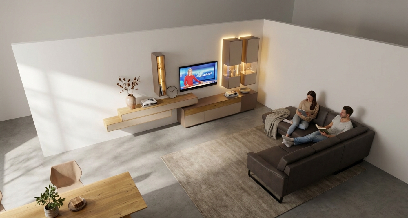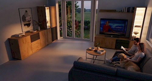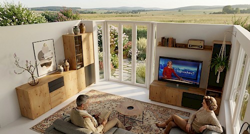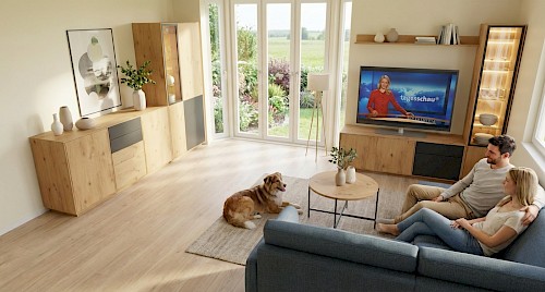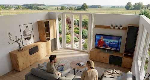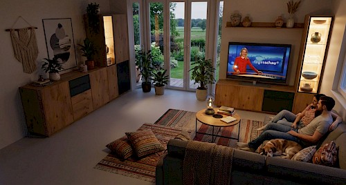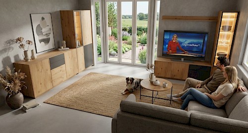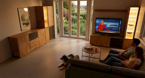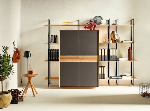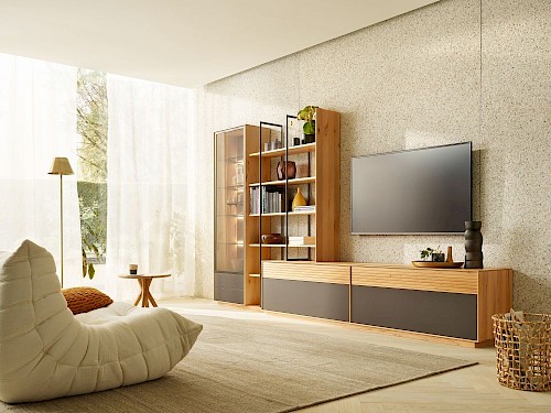 Zu sehen sind klare Formen mit ausdrucksstarken Fronten: nicht zufällig klingt puro wie pur. Was man nicht sieht, ist alles, das sich auf Wunsch hinter den Türen in Massivholz pur, lackiert oder mit Farbglas verbirgt. Kabelmangementsysteme, Kabeldurchführungen, Akustikstoffe, Infrarotrepeater... puro meistert alle Lebenslagen und die damit verbundenen Ansprüche. Perfekt um ihre Audiosysteme, Router, Verstärker und Kabelsalat hinter Fronten zu verstecken. Mit den neuen flexiblen Planungsvorschlägen passt sich PURO noch individueller an Ihre Wünsche an. Vom offenen Regal bis zur eleganten Stauraumwand – jedes Element wird so geplant, dass es Ihre Räume bereichert, ohne sie zu dominieren. Natürlich, hochwertig und nachhaltig gefertigt – so entsteht Wohnlichkeit mit Charakter.