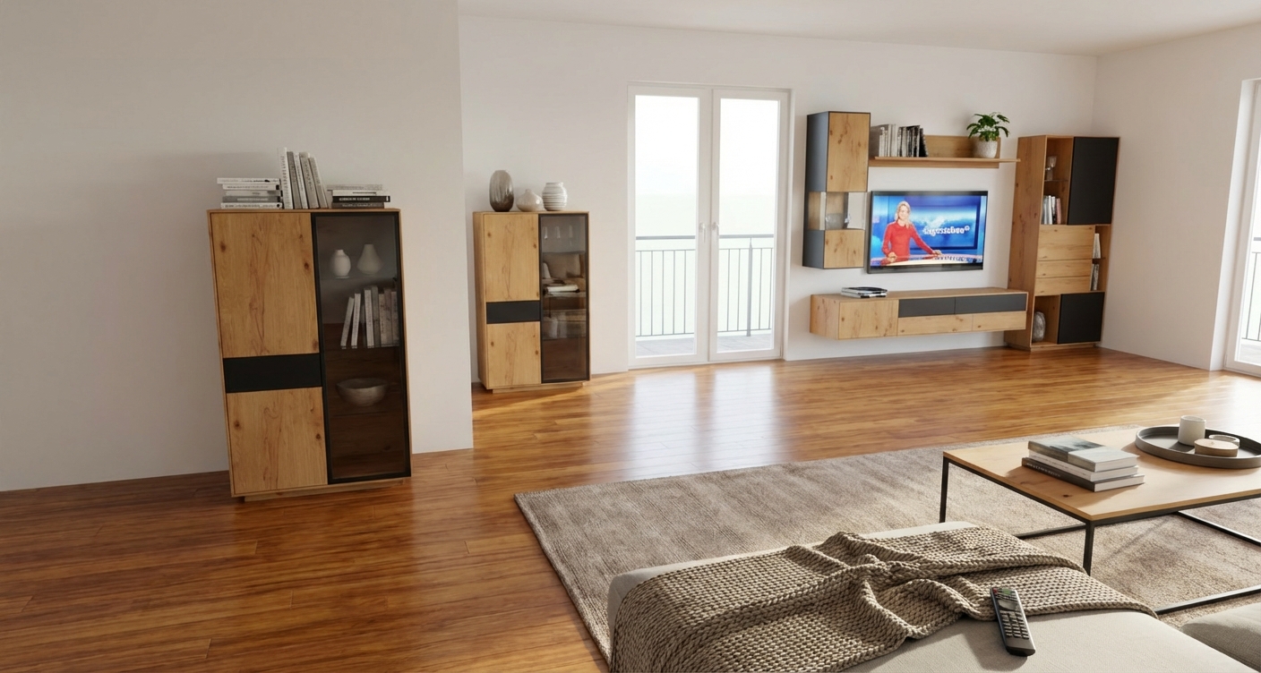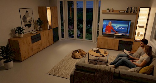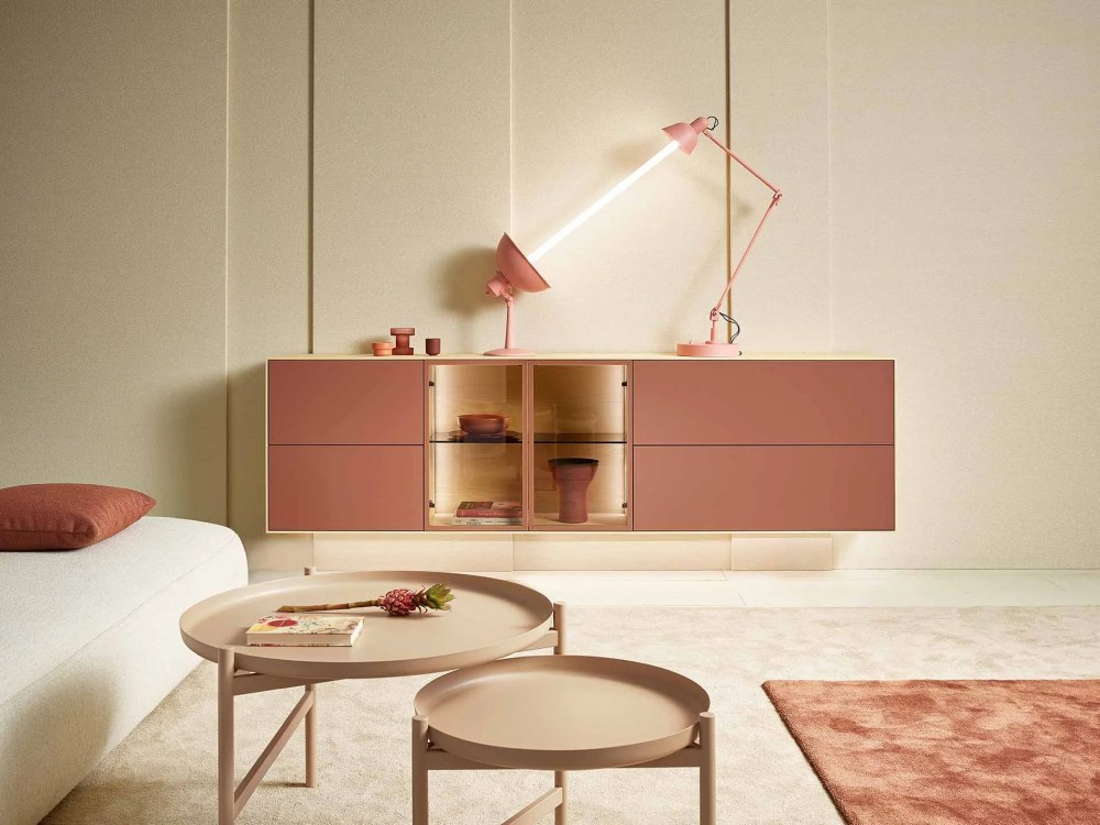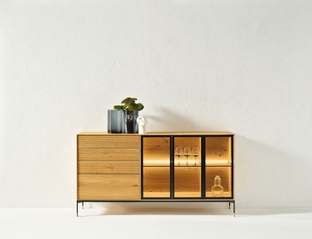 Ob Vitrine, Sideboard oder komplette Wohnwand – Lina überzeugt mit klaren, aufgeräumten Formen und einem modernen, luftigen Design. Rundrohr-Korpusse treffen auf minimalistische Fronten und Böden, kombiniert mit flexiblen Optionen bei Türen, Klappen, Maßen sowie Untergestellen aus Metall oder Sockel. Glas und Licht setzen zusätzliche Akzente – für individuelle Wohnwelten mit Charakter.