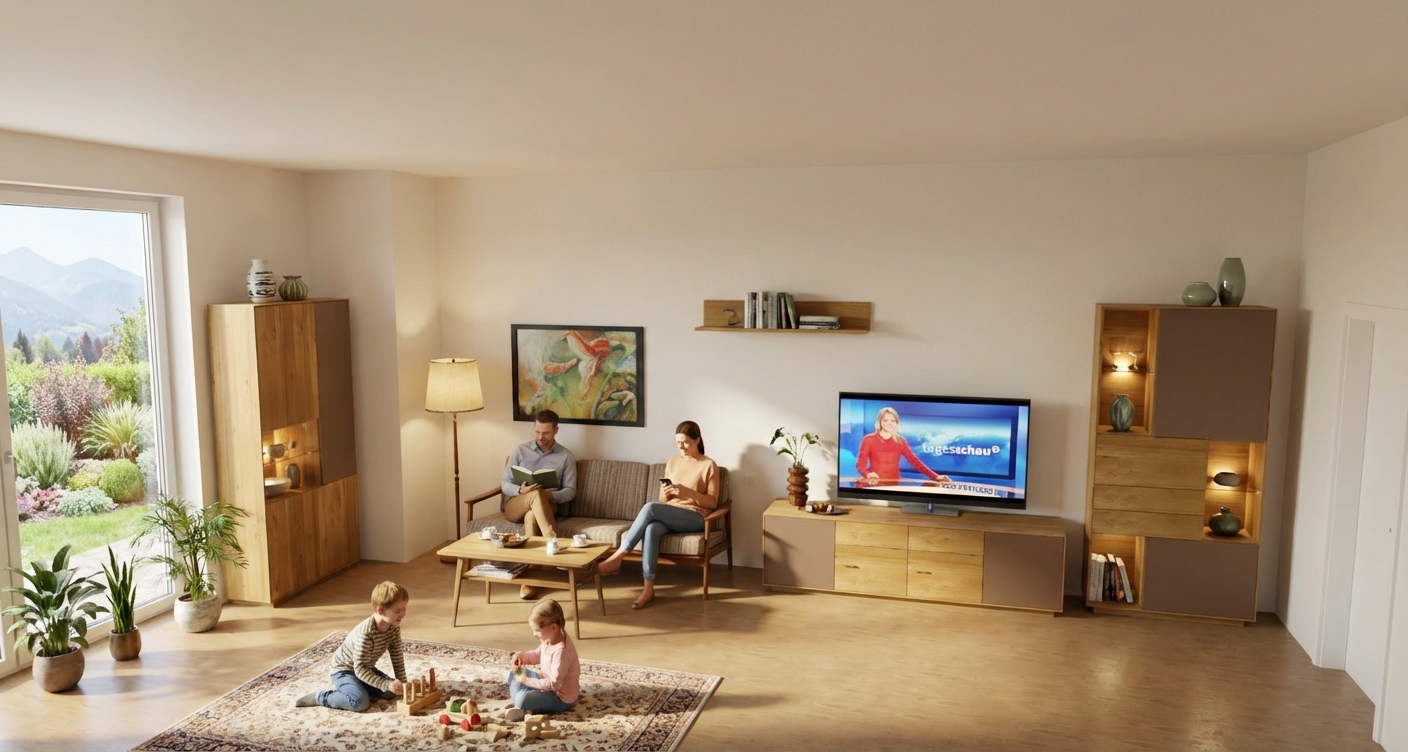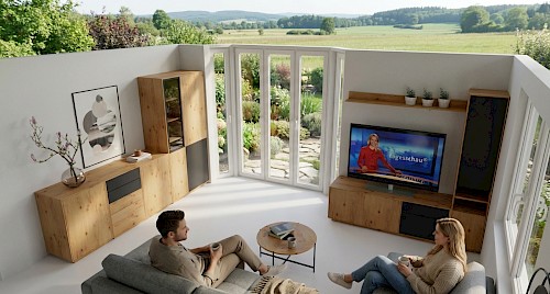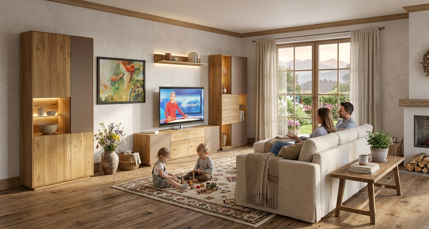 Die verwendeten Massivhölzer sorgen dabei für eine eindrucksvolle Maserung, die Ihren Wohnräumen eine ganz eigene Note verleiht. Neben Buche, Erle, Eiche oder Ahorn bieten wir Ihnen zusätzlich eine große Auswahl an edlen Kirsch-, Nuss- oder Zirbenhölzern. Gestalten Sie jetzt Ihre Wohnräume aus Massivholz nach Ihren Vorstellungen.